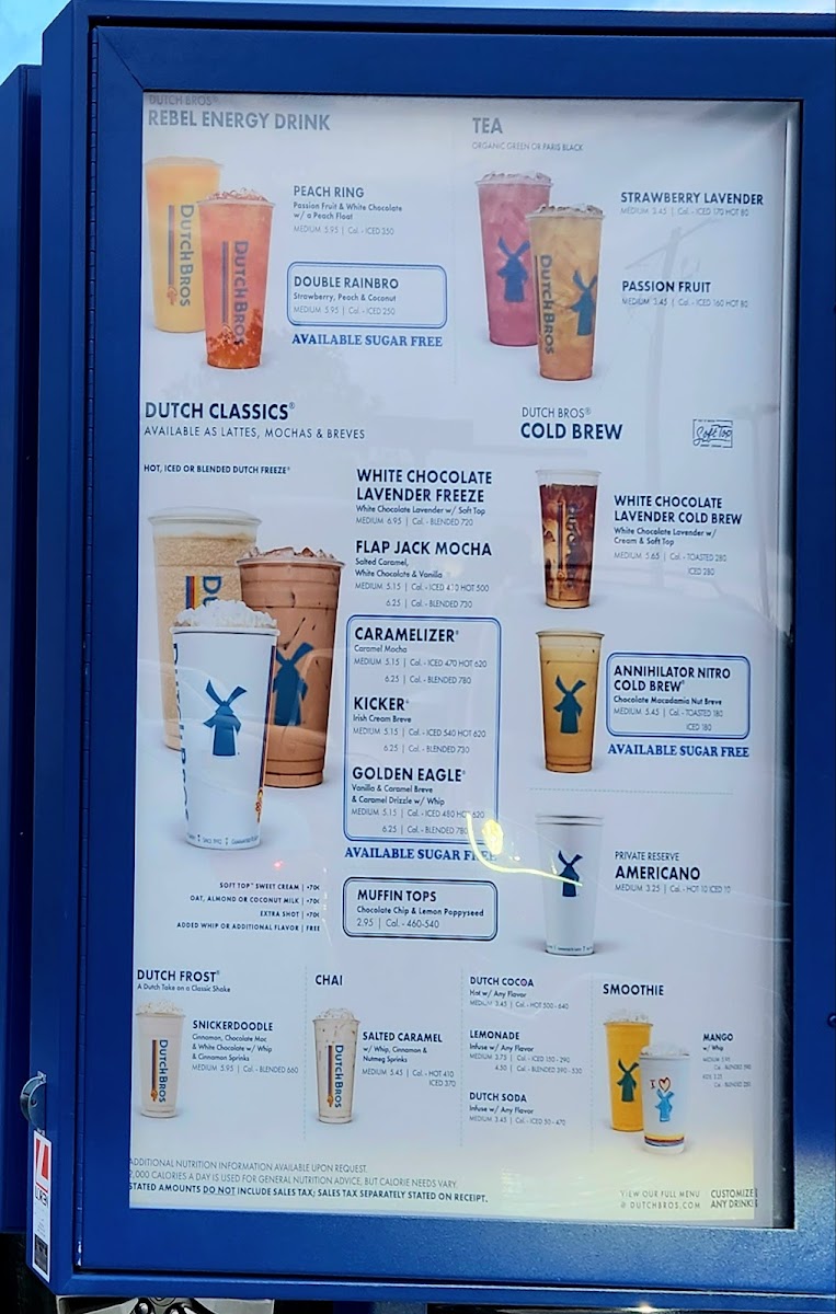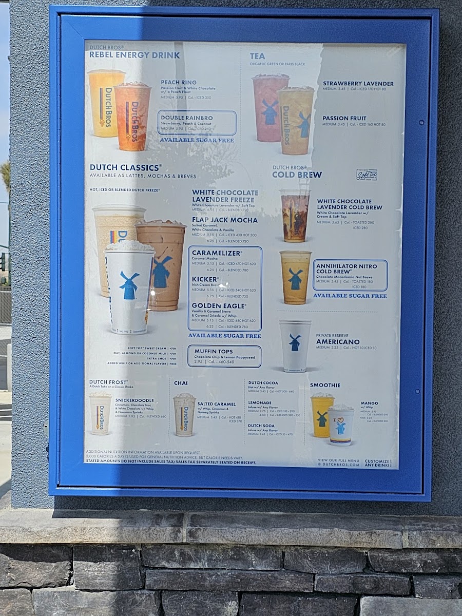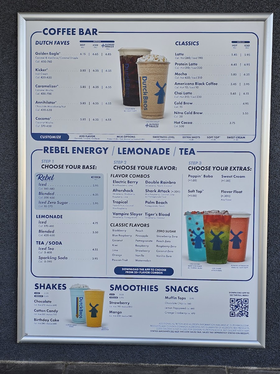 The menu is thoughtfully curated, balancing classic café favorites with fun, innovative options. Coupled with warm, personable service, Dutch Bros creates an inviting experience that leaves you eager to explore more of their creative offerings.